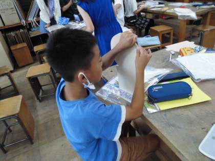 色をつけたり,きれいに仕上げるために紙やすりで削ったり,一人一人一生懸命取り組んでいます。