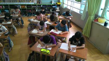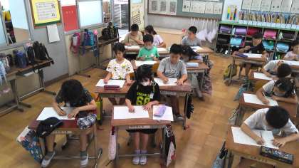 静かな雰囲気の中で清書していました。