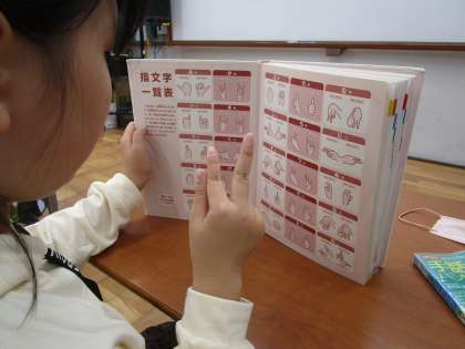 自分から見える手と相手から見える手のイラストの両方を確認しながら指の形を作っていました。