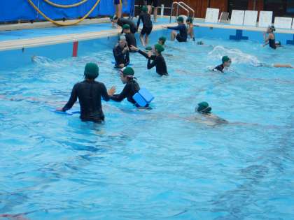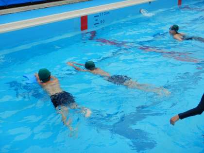 ねらい2は、バディで泳ぎ方を確認しながら、きちんと泳ぐ練習です。