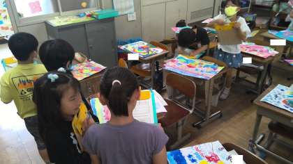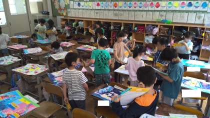 図工「ふしぎなたまご」の鑑賞会をしました。