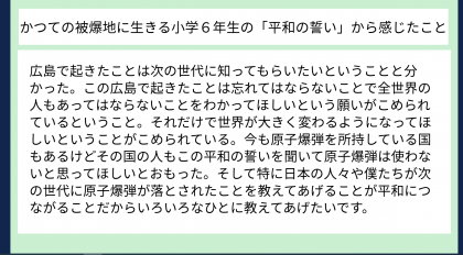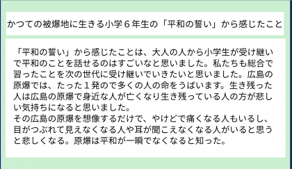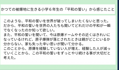 同じ小学6年生の言葉から、平和への思いを伝えていくことの大切さをより感じたようです。