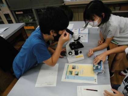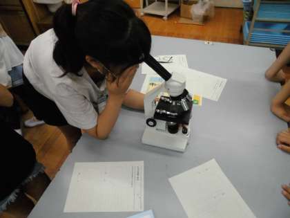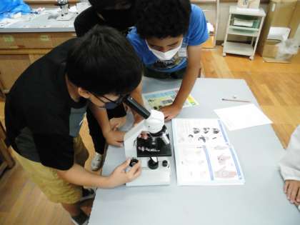 「あ!なんか動いた!」と微生物が動く様子を見て,興味をもって取り組んでいました。
