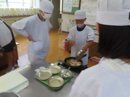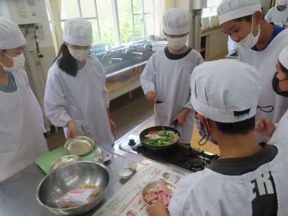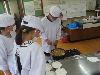 せっかくの食材がこぼれないように、でもしっかりかき混ぜないと焦げてしまう。みんなで声を掛け合いながら、炒めました。