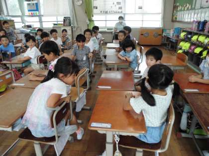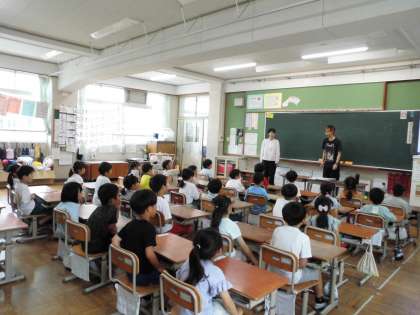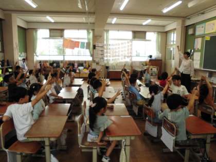 劇団道徳の方と一緒に道徳の前にワークショップをしました。みんなで拍手や目力、挨拶を受け取って送り合いました。様々な表現があって楽しい時間でした。