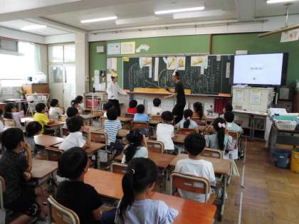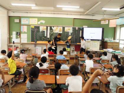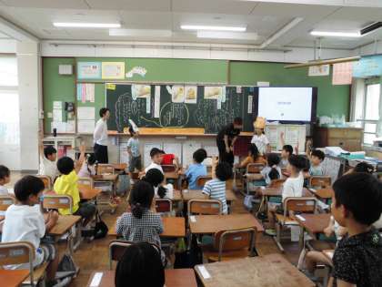 劇団道徳の方といっしょに道徳の学習をしました。しんせつについて考えました。オオカミの思いや考えをみんなで場面を作りながら考えました。子どもたちは、進んで学習に取り組みました。