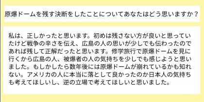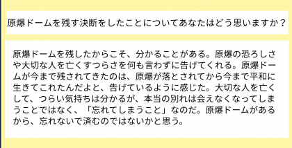 多くのことを学び、原爆ドームに込められた思いもともに感じてくれればと思っています。