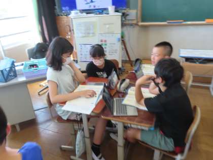 国語科では、互いの印象に残っている本のブックトークをするために、今の読書習慣について確かめました。