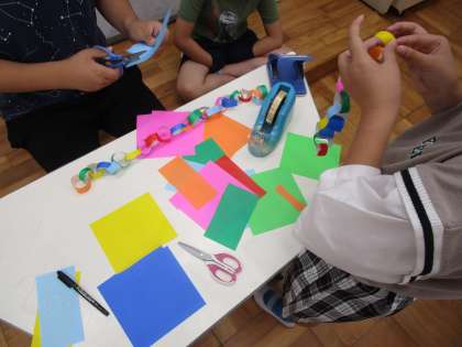 いただいた笹に短冊や飾りをつけました。
