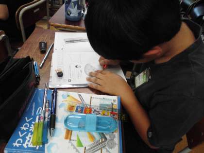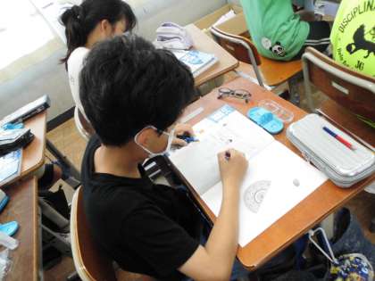 分度器やコンパスを使っていろいろなアイディアを出しながらどうやって書こうか考えることができました。