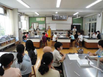 今日は、栄養教諭の先生とゲストティーチャーの方に来ていただき、5年生で「だしの授業」をしていただきました。