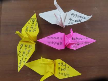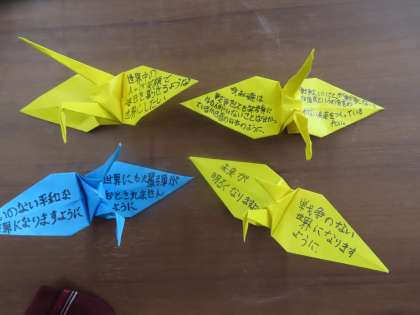 それぞれがこれまで学んできたことから、平和の願いを鶴に託していました。