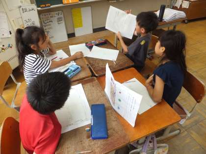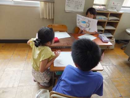 国語の学習で、あったらいいなと思うものを考えて、その考えたものについて、グループで発表会をしました。話し方名人や聞き方名人を意識しながら、話したり聞いたりすることができました。