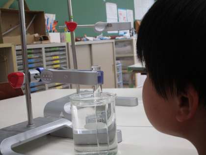 水を試験管に入れて、お湯につけたり、氷水につけたりして体積の変化を見ました。