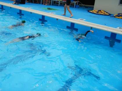 50m泳げる子は、ターンの時に足を付けずにそのまま泳ぐことを意識して泳ぎました。