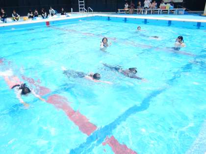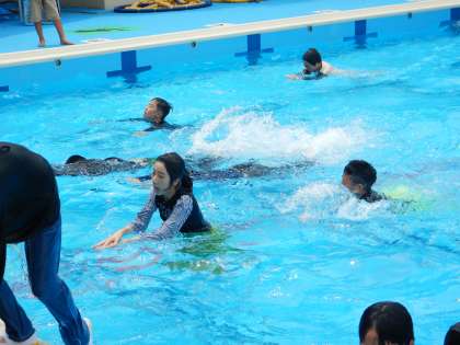 「もし万が一の時は!!!」「ういてまて!!!」この鉄則を教室で学んでから、いざプールへ!
