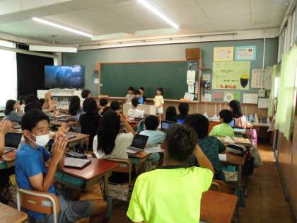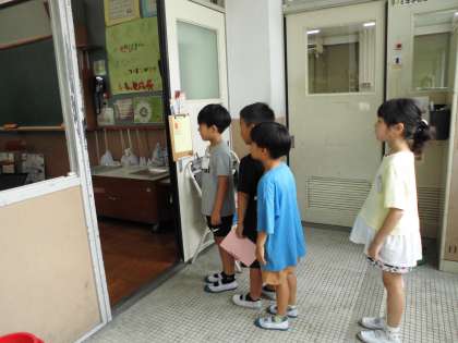 1学期、いろいろお世話になった6年生へ手紙を書きました。そして、それを渡しに6年生の教室へ。お礼の言葉と一緒に手紙を手渡しました。(全員分の手紙を学級代表として4人の子が渡しに行きました。)