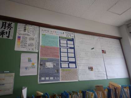 夏休みの素敵な自由研究が、教室や廊下に展示されています。