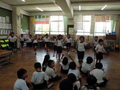 グループに分かれて素敵なところを伝えあいました。頑張っているところや笑顔なところ、自分でアレンジしているところなど、それぞれに頑張っているところを見つけた友達が伝え、みんなで「いいねぇ!」と言ったり拍手したりして確かめられました。自分のダンスに取り入れていけるといいな、友達のすてきなところをたくさん見つけていってほしいなと思います。
