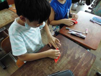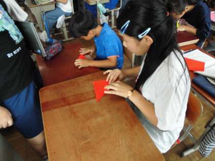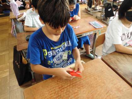その時に持っていく折り鶴を5年生でも作成しました。