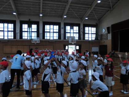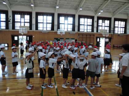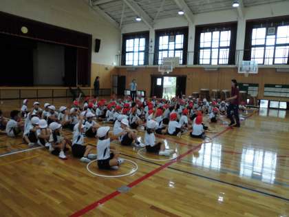 ボール運びをチームに分かれてしました。初めて一緒のチームの友達とボール送りリレーをし、ルールややり方を確かめながらみんなと協力して活動しました。初めてでしたが、後ろに下がったりボールを後ろに送ったりするところも上手にしていて感心しました。各チームで協力して心(ボール)を最後までつないでほしいです。