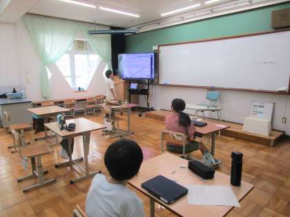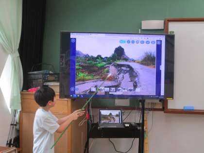 台風による被害を各自で調べて、ロイロノートでまとめて、発表している様子です。