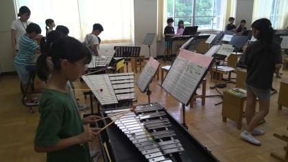 みんなで「茶色のこびん」の合奏をしています。少しずつ楽器の数が増えて子どもたちは難しそうです。次の時間からグループでの練習になります。うまくいくのでしょうか。どんな演奏になるか楽しみです。