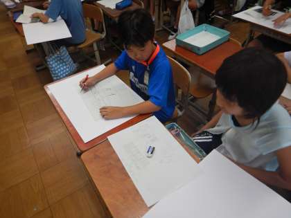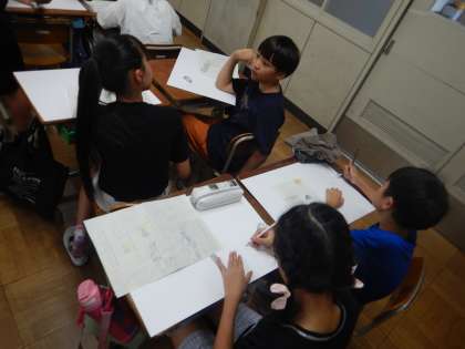 2組は「妖怪コンビニでバイトはじめました」を題材に、お話を絵にする活動に入りました