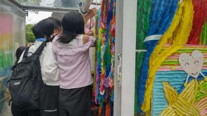 みんなの思いがこもった千羽鶴。