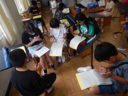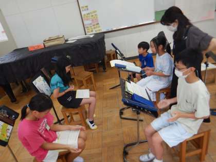音楽の学習では、アンサンブルの練習をしています。