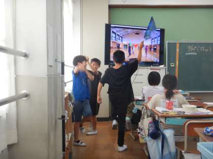 給食を食べ終わった後も、運動会のフラッグ動画を流していると…