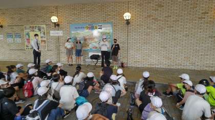お世話になったホテルともお別れです。代表の子どもたちが楽しかった思い出などを伝えてくれました。