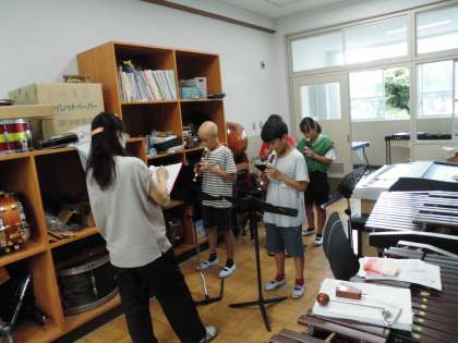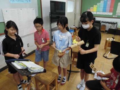 待っている人は、グループごとにリズムアンサンブル作りの続きに意欲的に取り組んでいました。