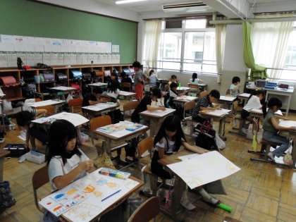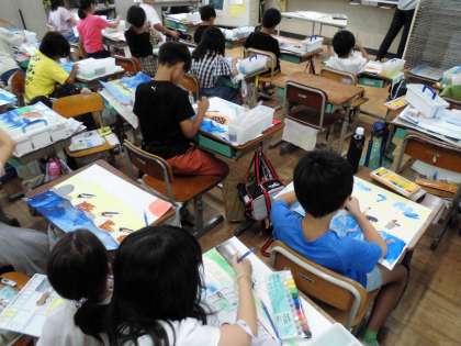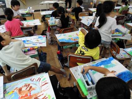色を水の量で調節したり、混色したりして、それぞれの思い描くお話の絵を描いていきました。
