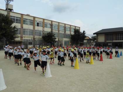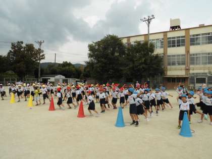 運動場での練習を始めています。今日は、応援座席からダンスの場所、競技の場所に移動する練習もしました。1年生にとっては、こうしたこともいろいろと時間を要します。一人一人、自分の場所や動き方を確認しながら活動しました。最後は雨がってきて、急いで校舎の中へ。明日は、最後までお天気がもってほしいです。