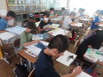 今回は、色を重ねて塗ることを大切に取り組みます。色の重ね方にもいろんな種類があり、自分のイメージにあうものを選択することが大事ですね。