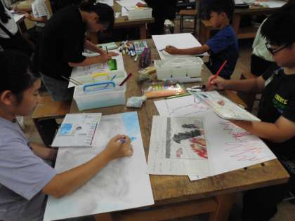 友達の作品を見ながら、これはマネしてみようという様子も見られ、みんなで高め合ってステキな作品が完成しそうです。