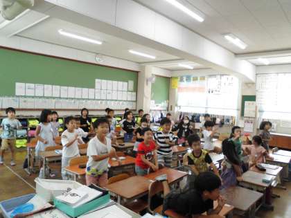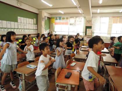 全校ダンスを練習しました。音楽に合わせて楽しんで体を動かしていました。