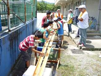 お昼ごはんのメニューは,「流しそうめん」と「焼肉」です。あっさりしたものと,こってりしたものとの組み合わせが絶妙です。