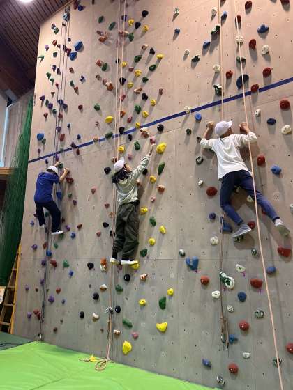 後半戦のクライミングは、なんと全員が7メートルの壁を登り切りました!最後はみんなで応援しながら登りきった時は大歓声と拍手が沸き起こりました、素敵ですね…!