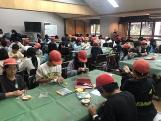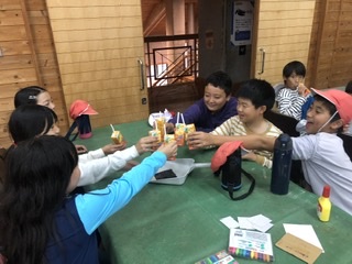 館内でのウッド写真たて作りに取り組んでいます。山の家の写真を飾ってね!