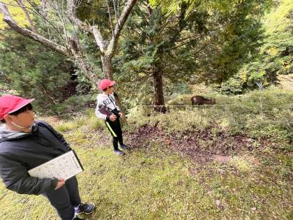 ネイチャービンゴで所内を歩いていると、鹿さん登場です。かわいいですね!