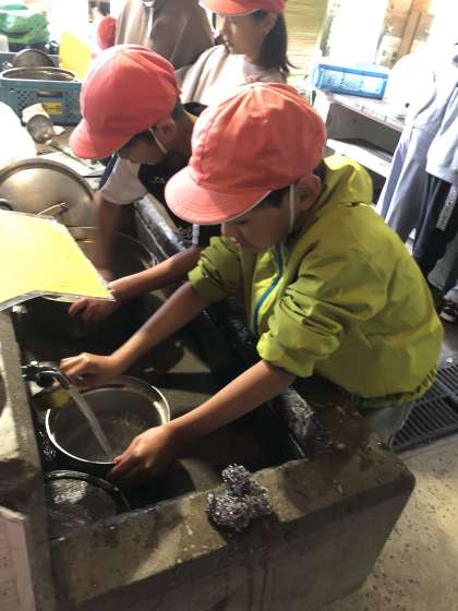 野外炊事も片付けに入っています!