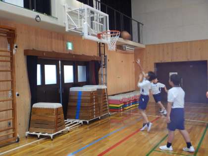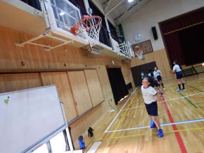 パス練習,シュート練習やレイアップシュート練習などをしてから試合形式で活動しています。