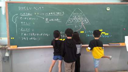 子ども達の議論が白熱し,席の向きを変えて話し合いました。