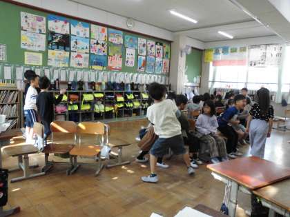 今日は、椅子取りゲームでした。わいわい言いながら楽しんでいました。さっと準備をするともっと早くから楽しめると思います。