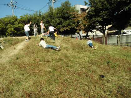 アルプスの草の上をゴロゴロ転がってとても楽しそうでした。友達と一緒に「面白いで!」「やるやる!」と言って転がって大喜びでした。