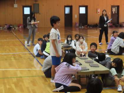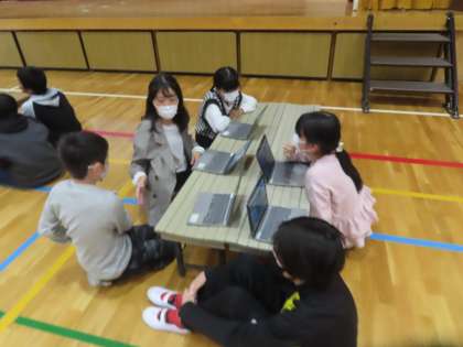 フレンドリータイムの遊びを決める話し合いをよりよいものにしていくために、国語科で話し合いの学習をしています。今回は、体育館に学年で集まり、チームごとに「考えを広げる話し合い」「考えをまとめる話し合い」を大切に話し合いました。いつも以上にしっかりした話し合いができたようです。