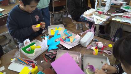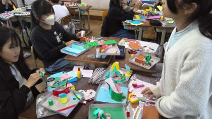 図工では、「コロコロガーレ」の学習をしています。いろいろな面白いコースが完成してきているようです。子どもたちに話を聞くと、一つひとつのコースに思いがあり、おもしろいです。