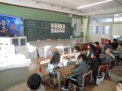 外国語活動ではサラダに使われる野菜の名前を聞いたり言ったりしました。